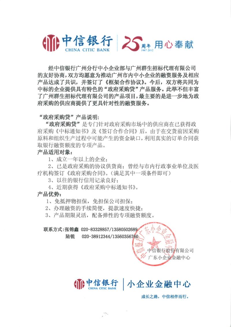 中信銀行政府采購貸產品說明